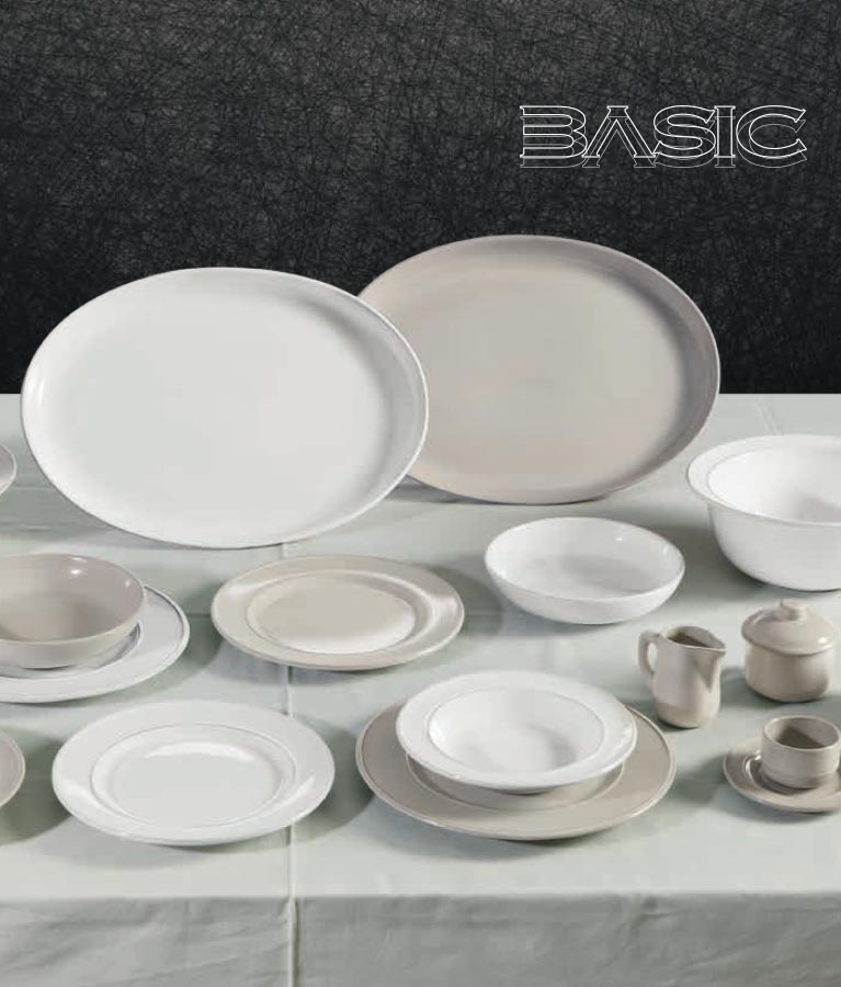 Gli articoli della Collezione Basic sono in gres (un particolare tipo di ceramica molto dura e resistente con una elevata temperatura di cottura) possono essere impiegate in lavastoviglie, frigo, freezer, microonde e in forno fino a 200 C°.