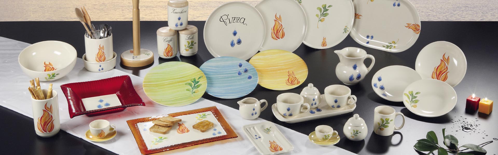 La Collezione Life è caratterizzata da gioiosi decori che richiamano gli elementi della Natura (acqua, fuoco, terra).