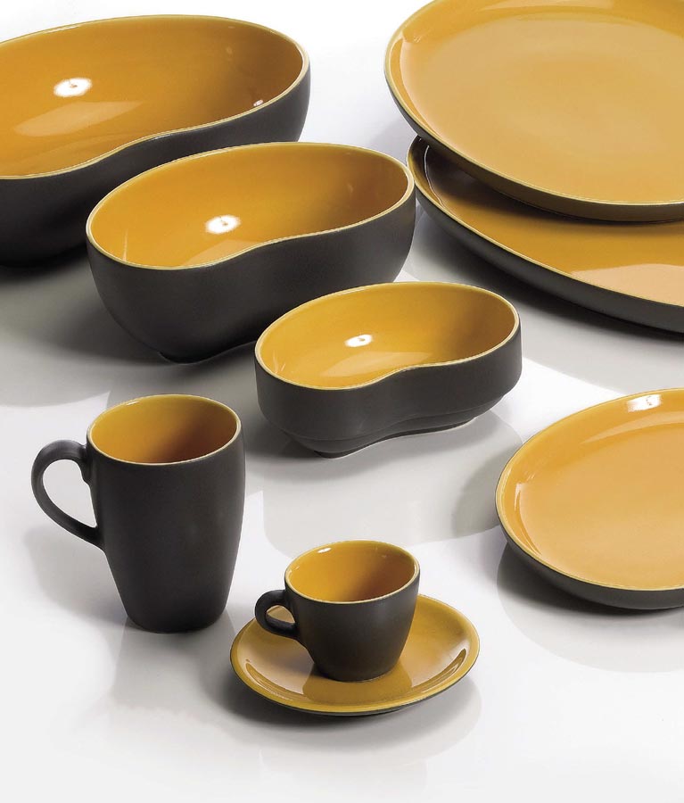 - Realizzato in smalto bicolore, con parte inferiore antracite opaca e parte superiore in bianco lucido oppure aranciato ocra lucido.