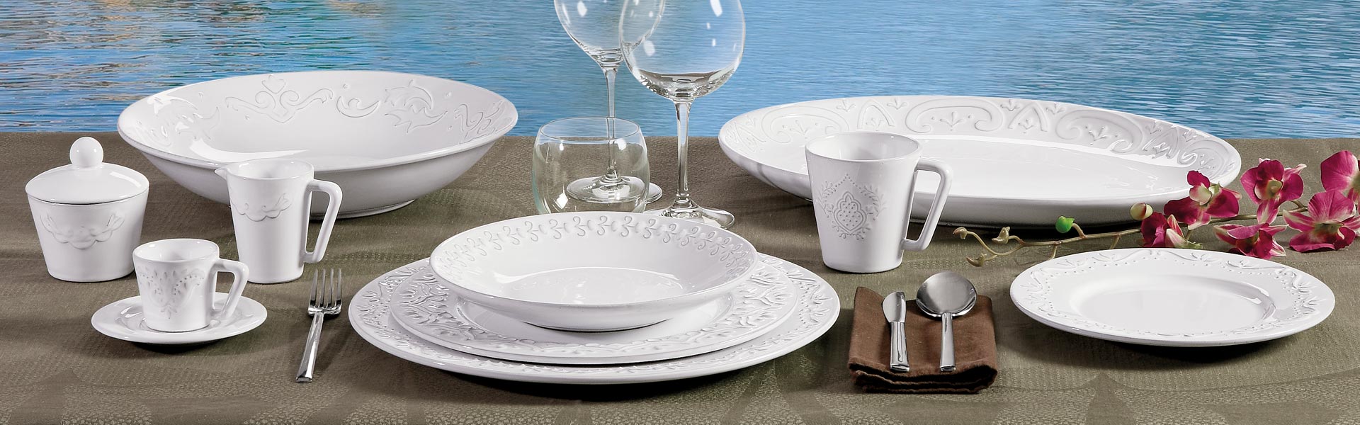 Il servizio piatti della collezione Vittoria di Topgres è ispirata allo stile shabby chic. In tavola regala l'atmosfera che rimembra il fascino del passato, avvolgendola di un'area intrisa di mistero e romanticismo.