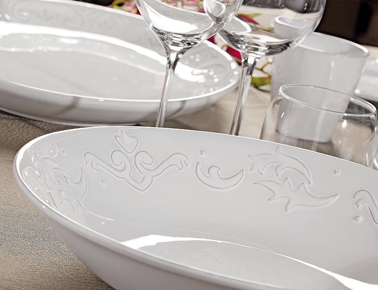 Ogni pezzo è prodotto rigorosamente a mano da esperti artigiani ed eventuali variazioni cromatiche non sono dovute a imperfezioni, ma alla lavorazione totalmente artigianale. Ciascuna Collezione è personalizzabile con più di 100 articoli.